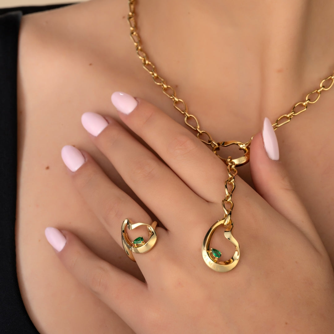 PERA SYNTHENTIC EMERALD LONG CHARM